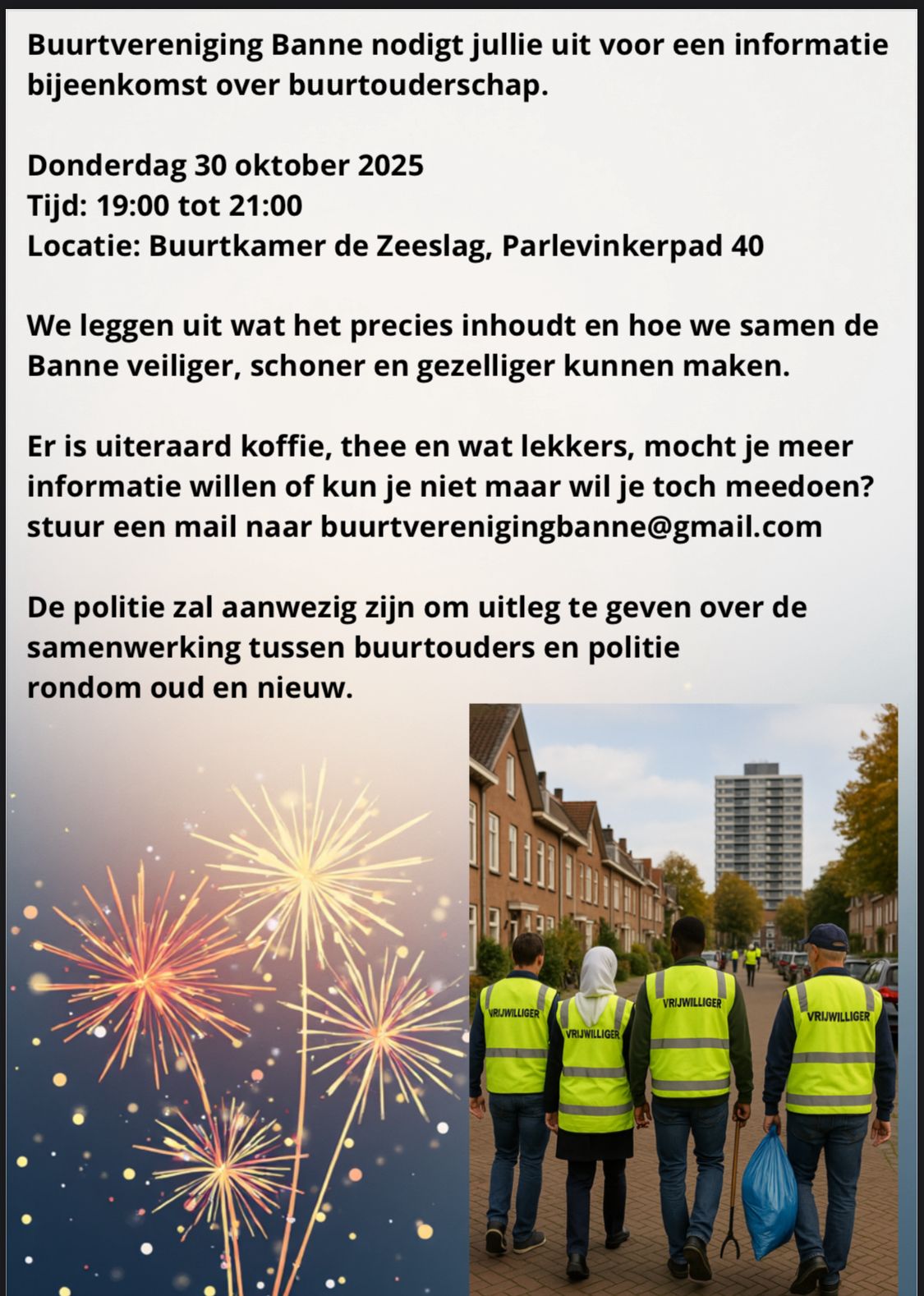stuur een mail naar buurtverenigingbanne@gmail.com