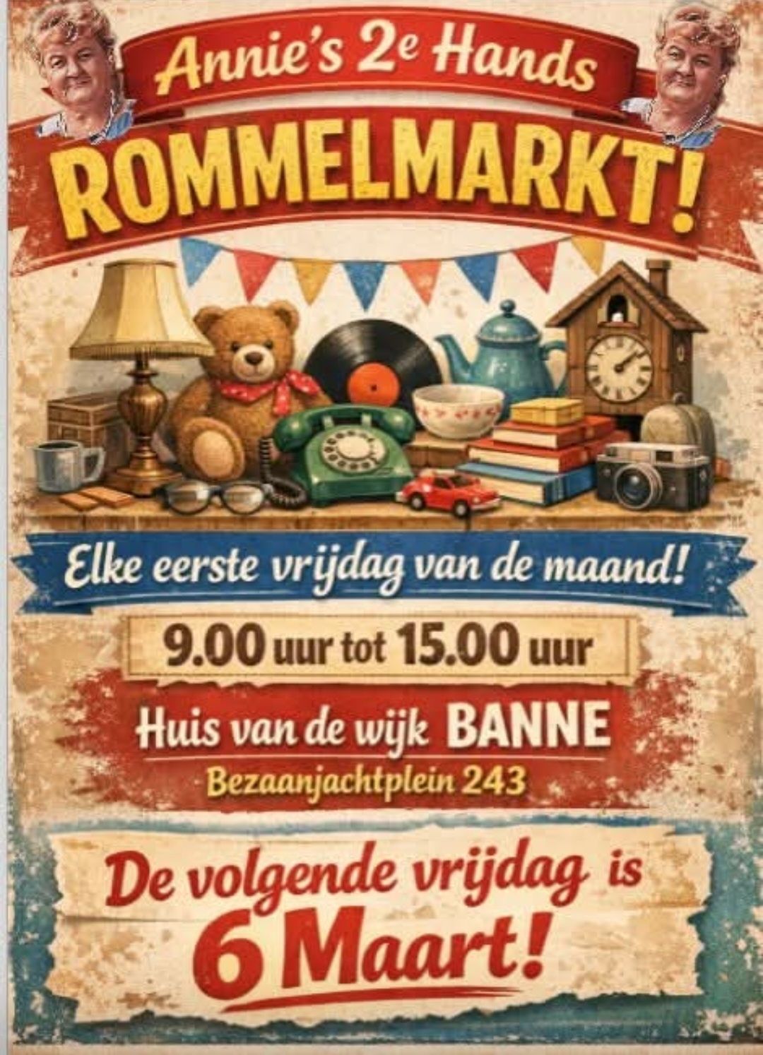 Annies tweedehands markt 1ste vrijdag van de maand 02.02.2026 Annies Tweedehands marktElke 1ste vrijdag van de maand09:00 tot 15:00Huis van de wijke Banne Print Mail Reageer